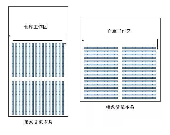 倉庫貨架布局,百科給出的定義是:指在一定區(qū)域或庫區(qū)內(nèi),對倉庫的數(shù)量、規(guī)模、地理位置和倉庫設(shè)施道路等各要素進(jìn)行科學(xué)規(guī)劃和整體設(shè)計。那么,倉庫貨架布局及倉庫布局方式有哪些呢?在我們工作中談起倉庫貨架布局,常見的無非就是兩種:橫式和豎式。橫式豎式主要針對倉庫工作面積和進(jìn)入方向而言,如下圖所示: