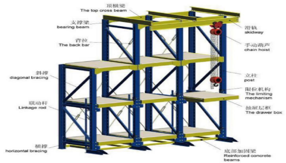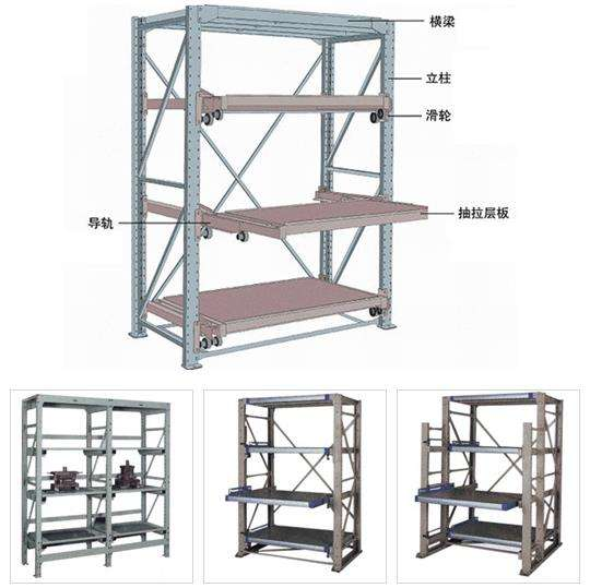 抽屜式貨架又稱模具貨架,主要用于存放各種模具物品。頂部可配置移動(dòng)葫蘆車(手拉或電動(dòng)),抽屜底部舍友滾輪軌道,承載后依然能用很小的力自如地拉動(dòng),附加定位保險(xiǎn)裝置,安全可靠。中型抽屜式貨架承載<750KG/層,重型抽屜式貨架載重>750KG/層。此貨架具體規(guī)格可根據(jù)客戶需求量身定制。